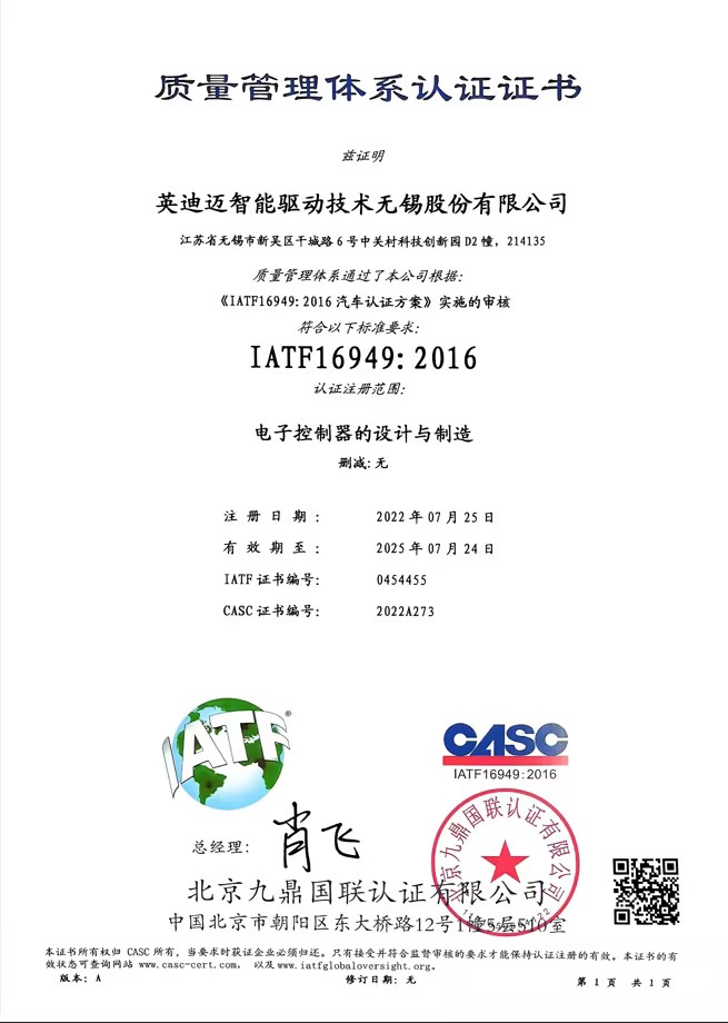英迪迈智能驱动技术无锡股份有限公司